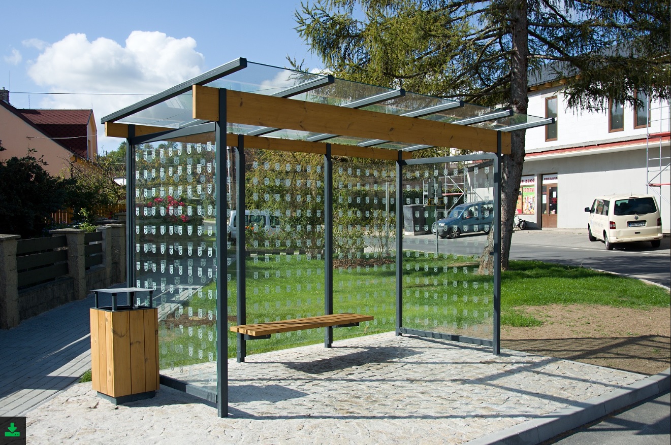 A horganyzott acél tartószerkezet porszórt lakkal van ellátva. A falpanelek edzett biztonsági üvegből készülnek. A tető üvegezéséhez edzett biztonsági üveget használunk, átlátszó vagy Satinato változatban. Az alsó tartószerkezethez alumínium profilokkal rögzítik. A pad lekerekített tömörfa lécekből készül, amelyeket rozsdamentes acél csavarokkal rögzítenek egy tartókonzol szerkezethez. Az oszlopok alsó részén lemezek találhatók a talajszint alatti alaphoz való rejtett rögzítéshez.