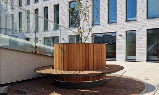 Az St- SANI köztéri virágtartó egy nagy, kör alakú konténer zöld és kisebb fák számára. Alkalmas például épületek lapostetőire, mélygarázsok tetőfedésére, a felszín alatt sekélyen hálóval átszőtt utcákra és minden olyan helyre, ahol a kívánt növényzettel nem ültethető be növényzett vagy burkolt a felület. A termék masszív felépítése nem csak az ültetett konténer emelési technológiával történő kezelését teszi lehetővé, hanem az integrált konzolos pad beépítését is a kerülete mentén. Hozz létre természetszigeteket olyan helyeken is, ahol a helyzet nem teszi lehetővé a hagyományos megoldást.