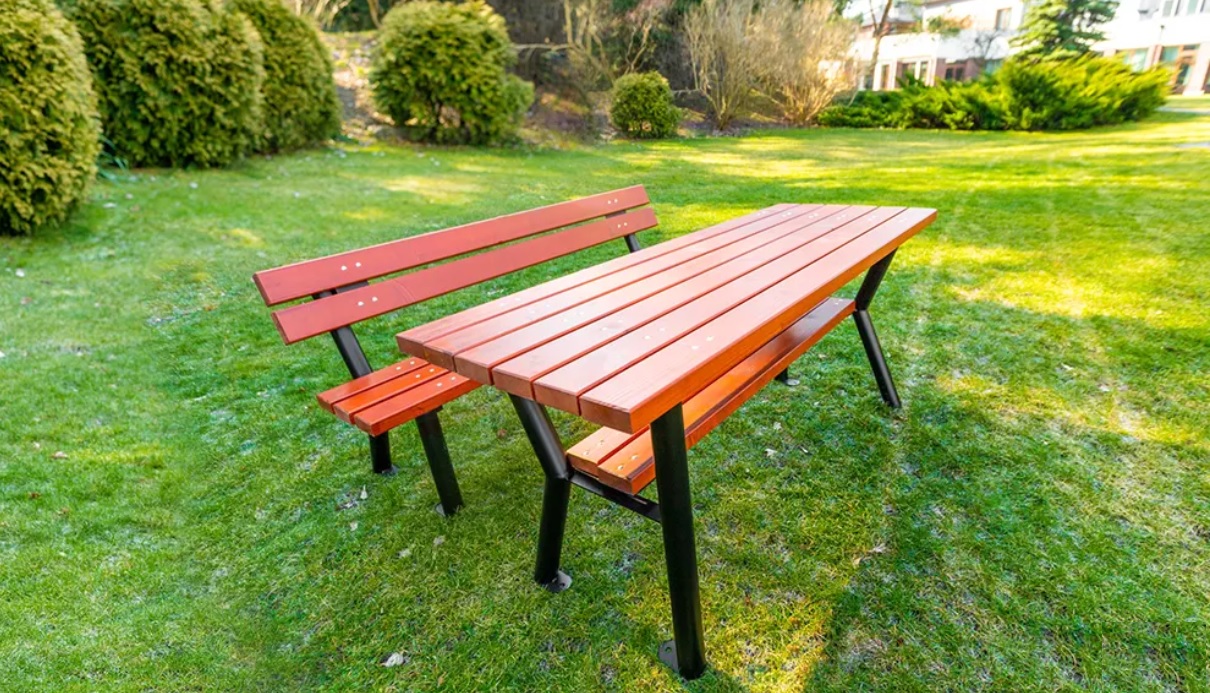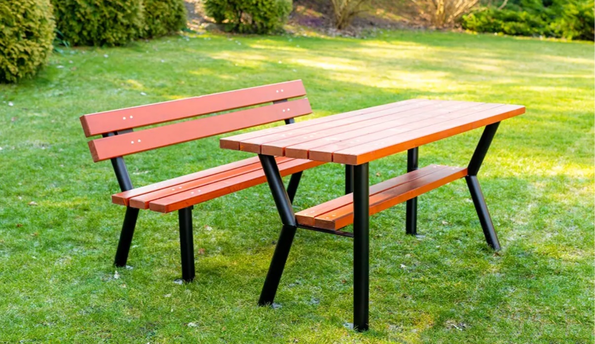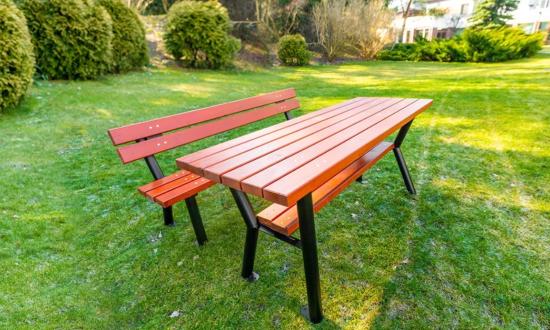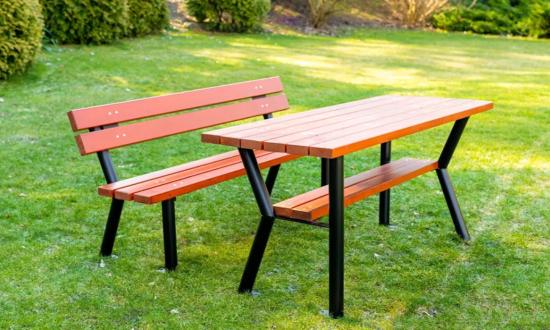A rendkívül masszív és univerzális Gaia parkbavaló, kerti vagy városi asztalok és padok  legújabb típusa a kisépítészeti kínálatunknak. Az acélváz megbízhatóan védett az időjárás viszontagságaival szemben, ami kétségtelenül befolyásolja az asztal hosszú élettartamát. Alapkezelt és négyszer festett skandináv magashegyi lucfenyő táblák három színben választhatók - mahagóni, teak vagy rózsafa. A teteje 6 db 170 cm-es szabványos faelemből áll. Mindegyik tábla 10 cm széles és 4 cm vastag. Az ilyen paraméterek kétségtelenül garantálják a termék megbízhatóságát, amely sok évig szolgál. A Gaia parkasztal ezért nem csak zártkörű rendezvényeken, hanem a városépítészet elemeként is tökéletes lesz a kerti paddal ellátott garnitúrának. Bárok és fogadók felszerelésének is tökéletes lesz. Parkokban és zöldterületeken pótolhatatlan, egyszerűen csak a park padjaival és a kis építészet egyéb elemeivel alkotott duettekhez készült.