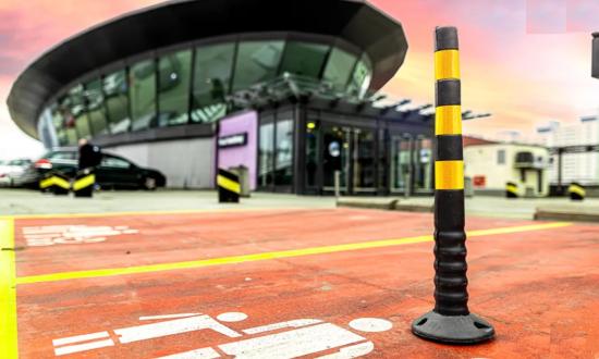 Ütközéskor az oszlop megbillen, majd visszanyeri eredeti alakját, biztosítva a biztonságot.