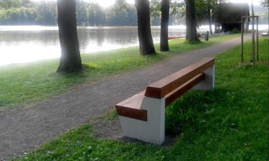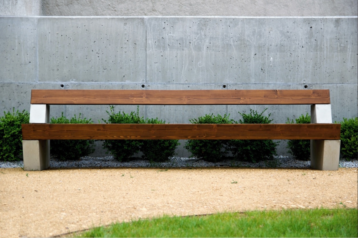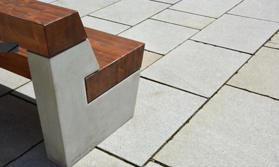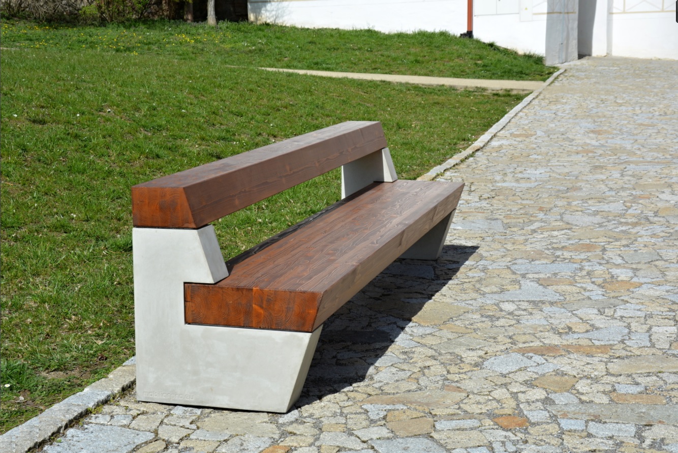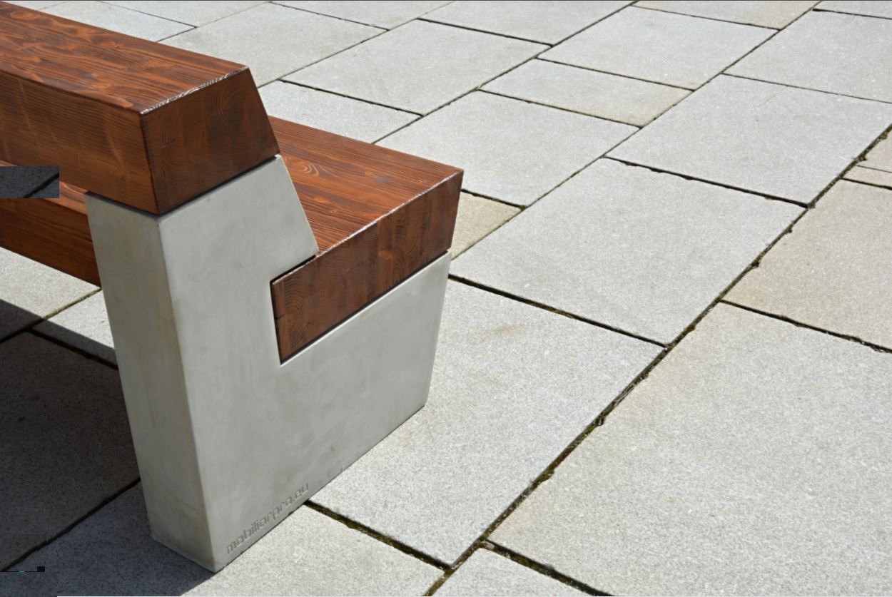 Nevéhez hűen robusztus, szinte monumentális, egyszerű formavezetésű pad. A masszív ülést és háttámlát ragasztott profilok alkotják, amelyeket két egyszerű beton oldallap támaszt. Mind a fiatal mind az idősebb korosztály számára ideális pihenőhely. A fa és a beton csatlakozási pontjai fémes elemekkel vannak ellátva, így a pad meglehetősen könnyen a helyükre állítható. A pad alakját úgy lett tervezve, hogy alkalmas legyen a fiatal generáció különleges üléseire - magasabb üléshelyzet a háttámlán, lábakkal az ülésen.