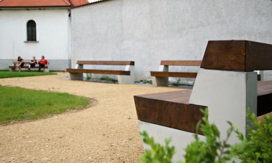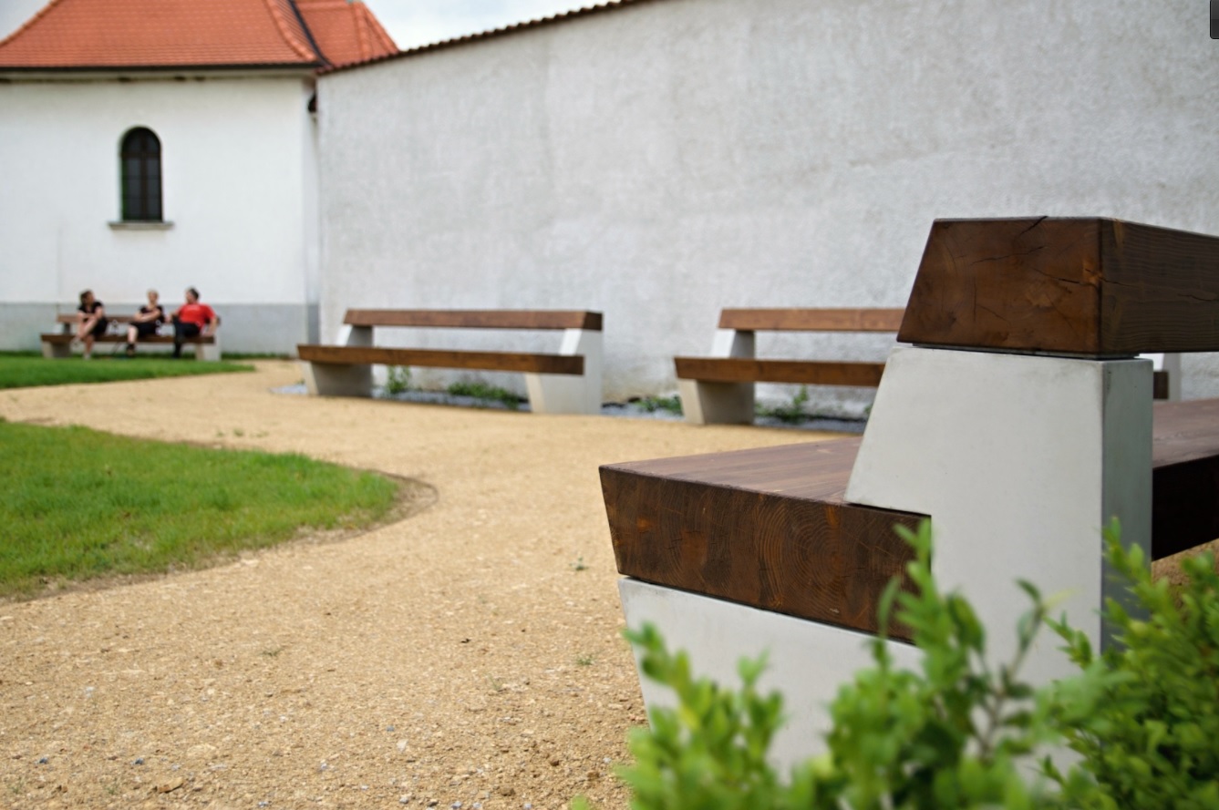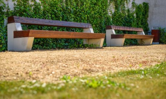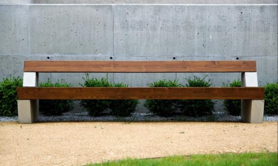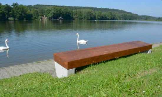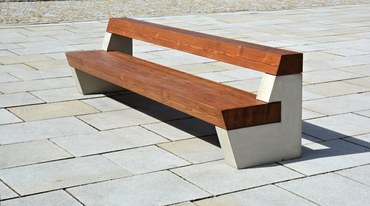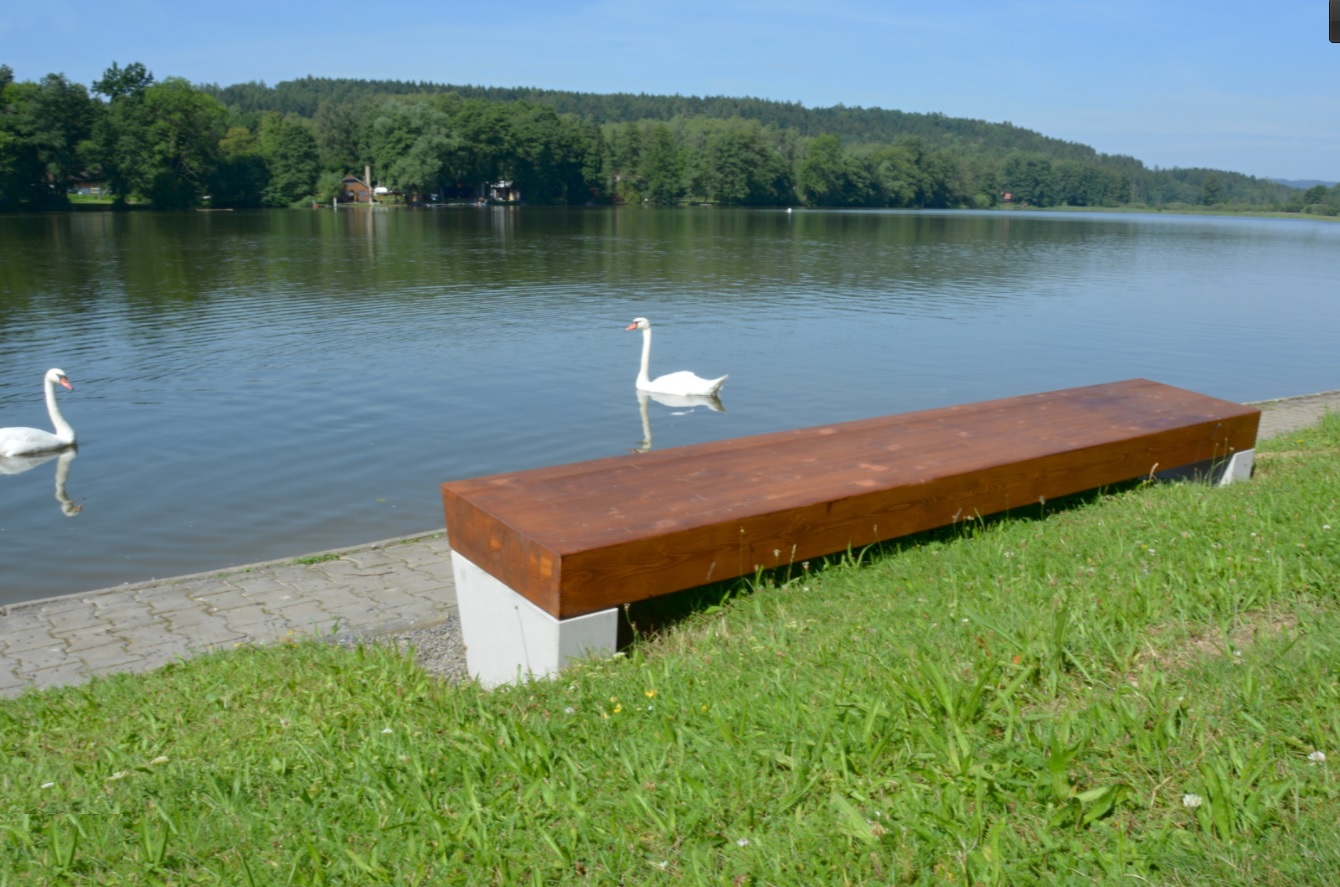 Nevéhez hűen robusztus, szinte monumentális, egyszerű formavezetésű pad. A masszív ülést és háttámlát ragasztott profilok alkotják, amelyeket két egyszerű beton oldallap támaszt. Mind a fiatal mind az idősebb korosztály számára ideális pihenőhely. A fa és a beton csatlakozási pontjai fémes elemekkel vannak ellátva, így a pad meglehetősen könnyen a helyükre állítható. A pad alakját úgy lett tervezve, hogy alkalmas legyen a fiatal generáció különleges üléseire - magasabb üléshelyzet a háttámlán, lábakkal az ülésen.