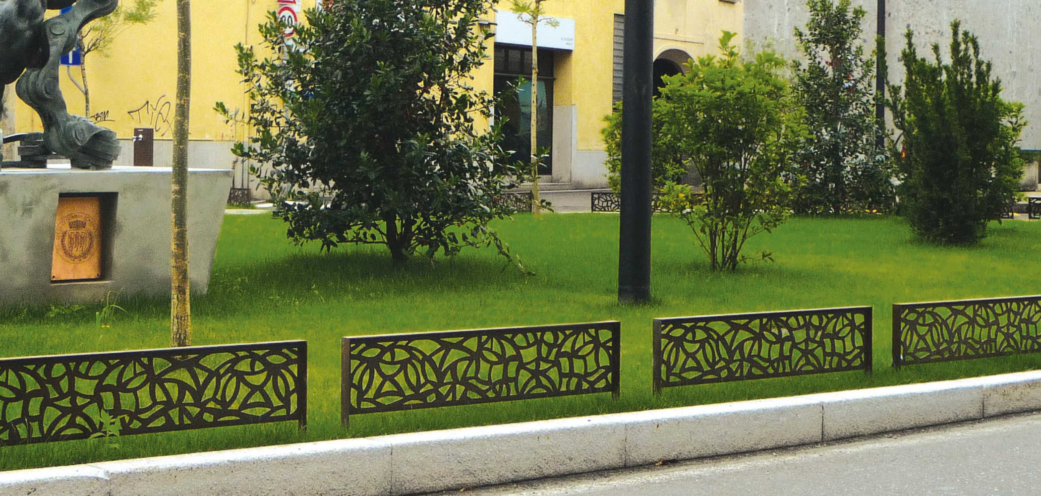 Lézervágott vastaglemezből készűl. A rögzítéshez talplemezzel ellátott. Kivitel: horganyzott+porfestett. Perforált levélformákkal díszített.