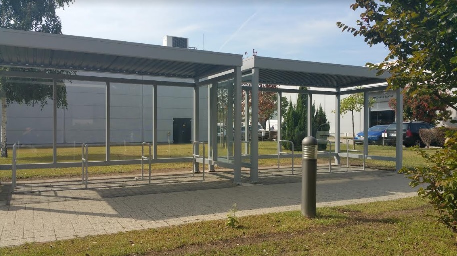 • Az alumínium szerkezetű fedett motorkerékpár-tároló egyedi méretezéssel is rendelhető, bronz v. víztiszta, 10mm vtg. légkamrás polikarbonát oldal és hátfalakkal.