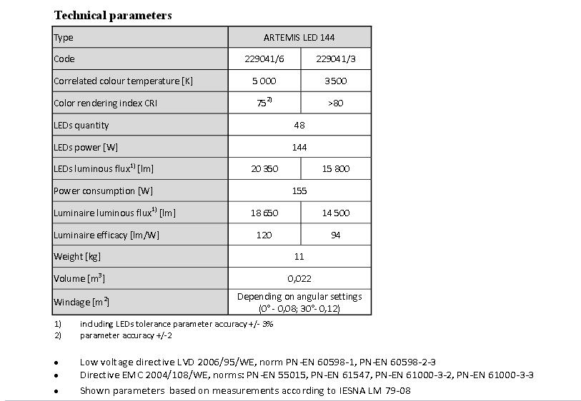 Lehetőség van különböző fényforrások és teljesítmény használatá, alkalmazkodva a felhasználás helyszínének körülményeihez.