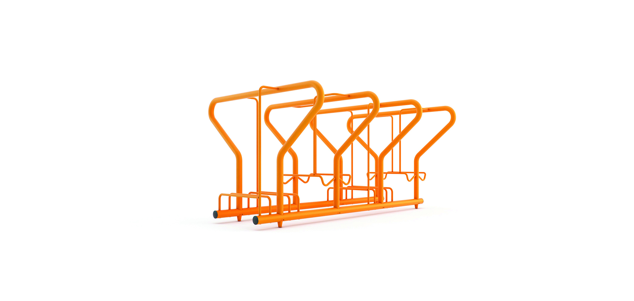 Moduláris acél kerékpártartó, amely két vízszintes csőből áll, amelyekre kerékpártartók vannak hegesztve, keréktartókkal felszerelt, két különböző magasságban elhelyezve. Két hosszban rendelhető, mindkettő kétoldalas. Ez a konfiguráció lehetővé teszi két kerékpár egyidejű elhelyezését az egyes támasztékokkal szemben, megkétszerezve a parkolási kapacitást.