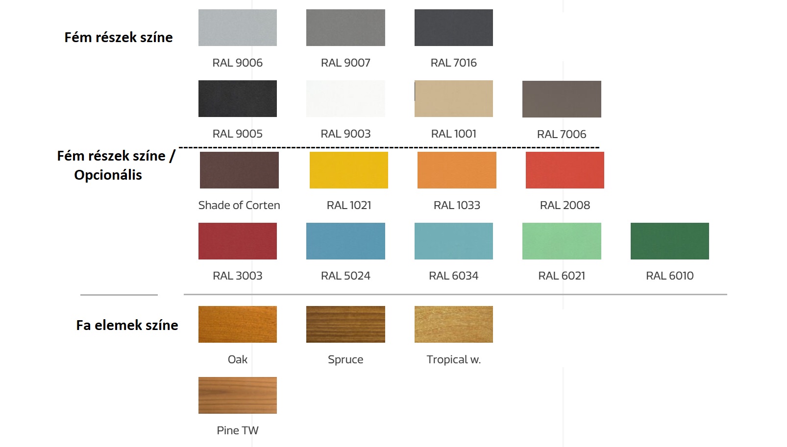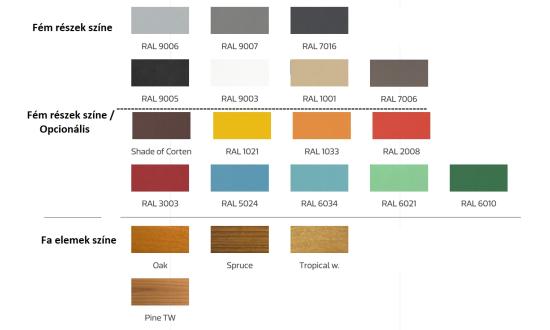 A horganyzott acél tartószerkezet porfestett lakkal van bevonva. Az EPDM anyagból készült kör keresztmetszetű gumiprofil elenáll az UV-sugárzásnak. Az alsó (föld alatti) részbe egy négy furattal ellátott rögzítőlemez van hegesztve az alaphoz való rögzítéshez.