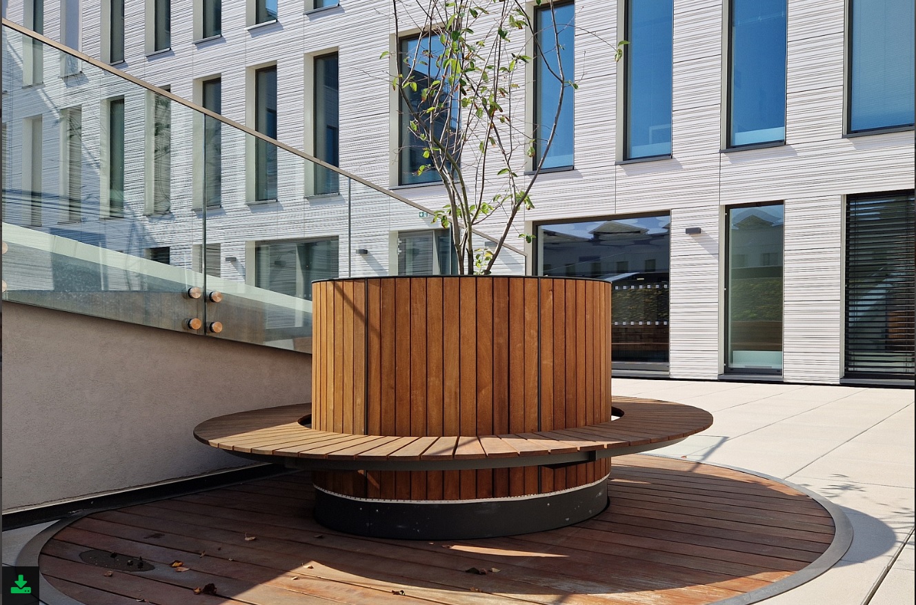 Az St- SANI köztéri virágtartó egy nagy, kör alakú konténer zöld és kisebb fák számára. Alkalmas például épületek lapostetőire, mélygarázsok tetőfedésére, a felszín alatt sekélyen hálóval átszőtt utcákra és minden olyan helyre, ahol a kívánt növényzettel nem ültethető be növényzett vagy burkolt a felület. A termék masszív felépítése nem csak az ültetett konténer emelési technológiával történő kezelését teszi lehetővé, hanem az integrált konzolos pad beépítését is a kerülete mentén. Hozz létre természetszigeteket olyan helyeken is, ahol a helyzet nem teszi lehetővé a hagyományos megoldást.
