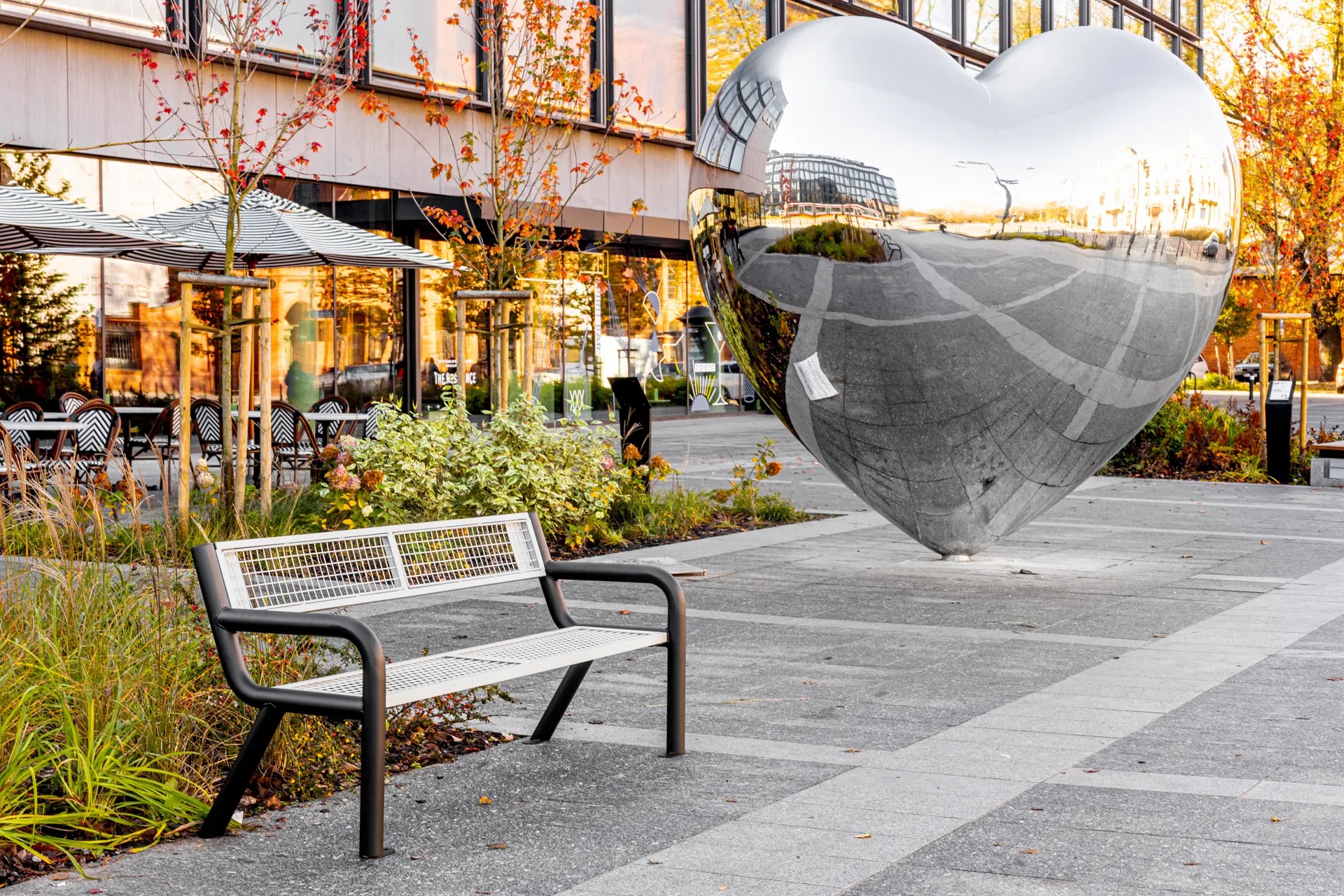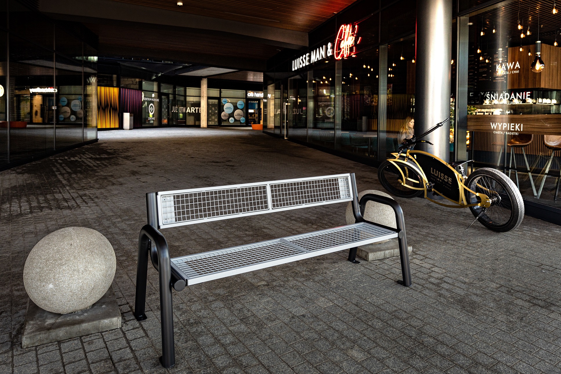 Tökéletesen illeszkedik ipari környezetbe és olyan helyekre, ahol a rendes parkos padok nem tarthatnak túl sokáig.