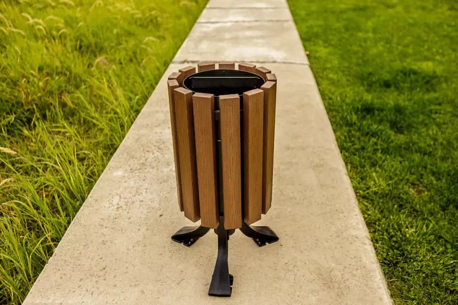 Az univerzális stílusnak köszönhetően a Łódz WPC hulladékgyűjtő bármilyen környezetbe beilleszkedik. Sőt, szemetesünk kompozit háza finoman harmonizál az utcabútorok egyéb elemeivel.