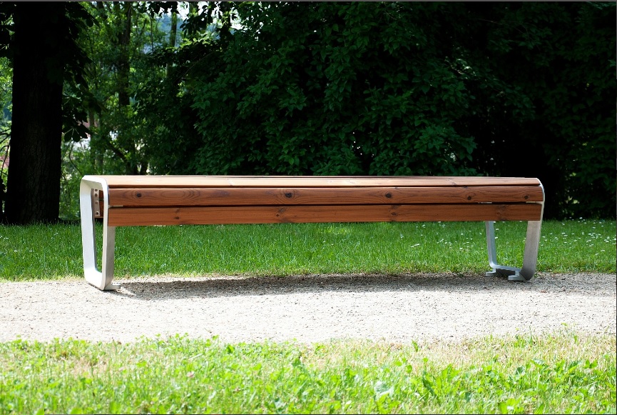Az öntött alumíniumötvözet oldalfalai természetesek maradhatnak, vagy porbevonatúak lehetnek. A háttámlával ellátott ülés tömörfa lécekből áll, amelyeket rozsdamentes acél csavarokkal rögzítünk a tartószerkezethez. Az alap alsó részén négy lyuk van az alaphoz történő rögzítéshez.