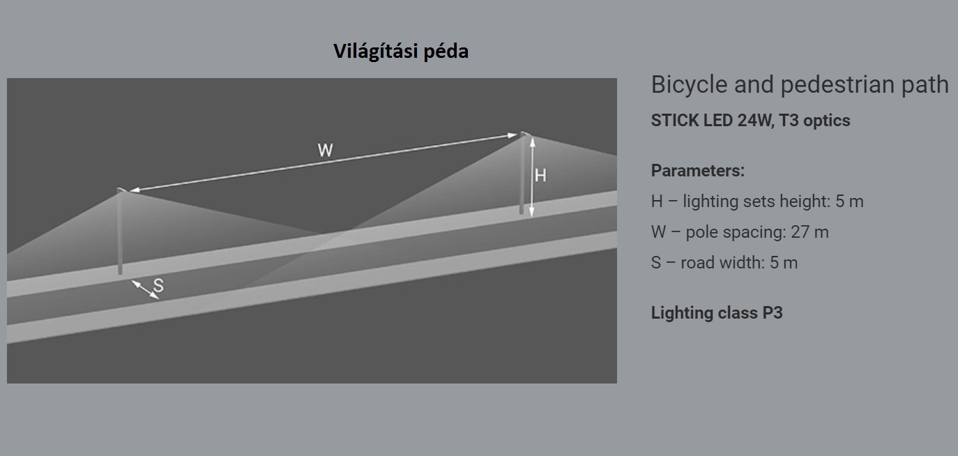 Alkalmazás: lakóutak (belső), irodaépületekkörnyéke, lakóparkok, parkok, gyalogos útak, parkolók, bevásárló központok
