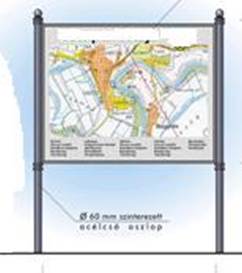 • 60 mm szinterezett acélcső oszlop színes térképpel, felirattal ellátva
