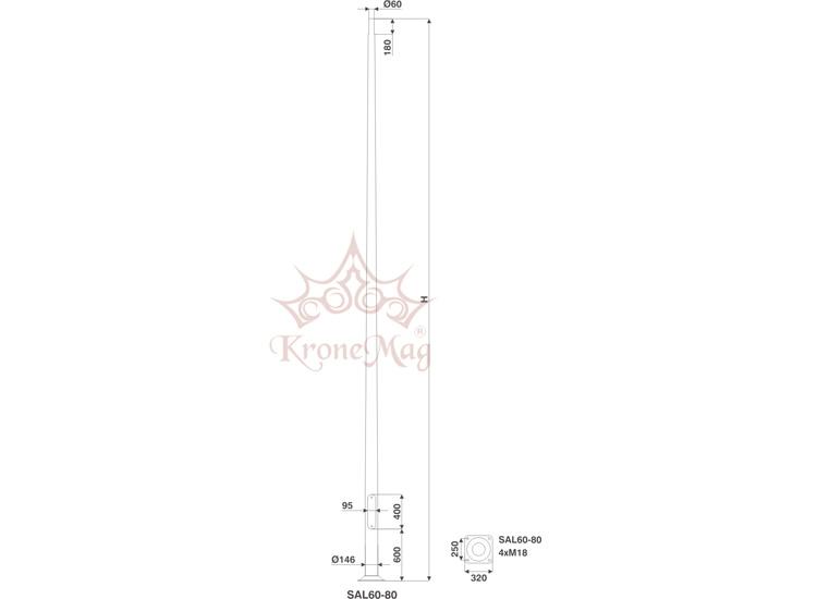 "SAL 75 WR 9/2" kültéri alumínium lámpaoszlop , extrudált alumíniumbol készül.