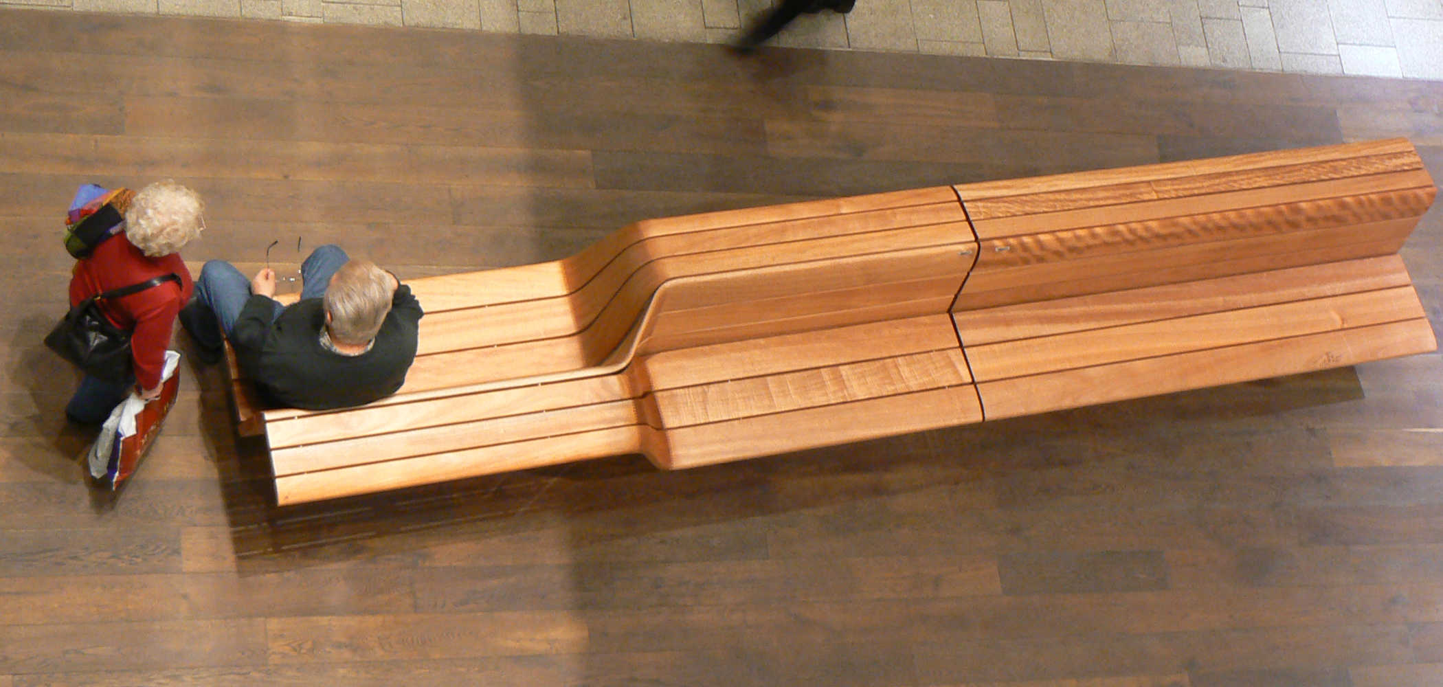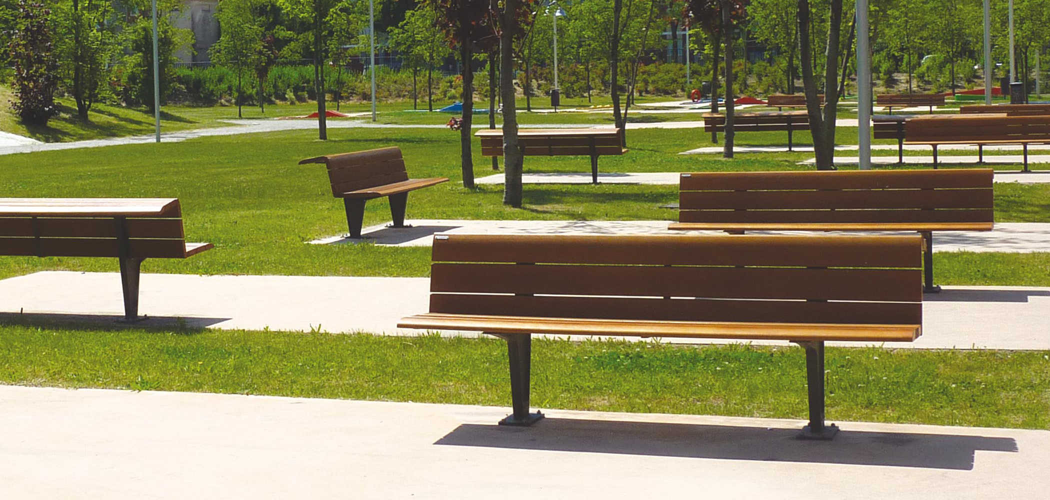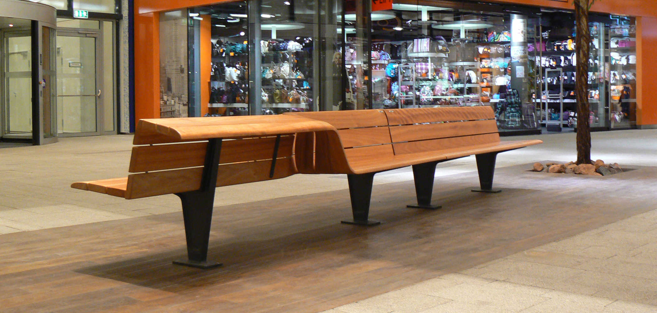 Minőségi csavart pad egzotikus fa háttámlával. Mindegyik fadarab független, ezért egyedileg cserélhető, és az ülésen vagy a háttámlában lévő helyzetétől függően  mindegyik eltérő alakú. Az öntöttvas lábakat, ha lehetséges, a földbe helyezzék el, hogy a szerkezet változatosabb legyen, máskülönben rögzíthetők az a lyukakkal ellátott alaplemezen keresztül.