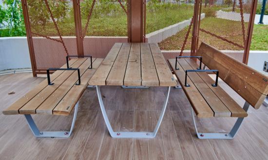 Modern, de egyszerű formatervezés eredményeképpen a padot könnyű elhelyezni bármilyen környezetben.