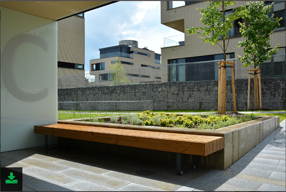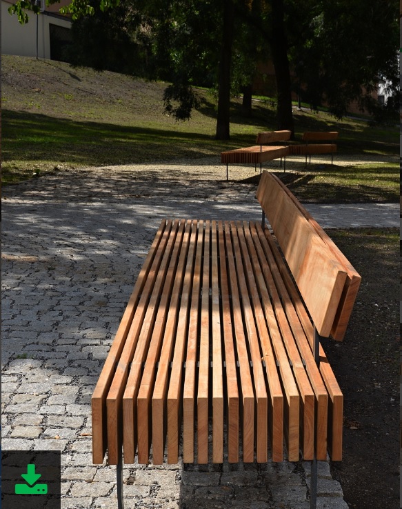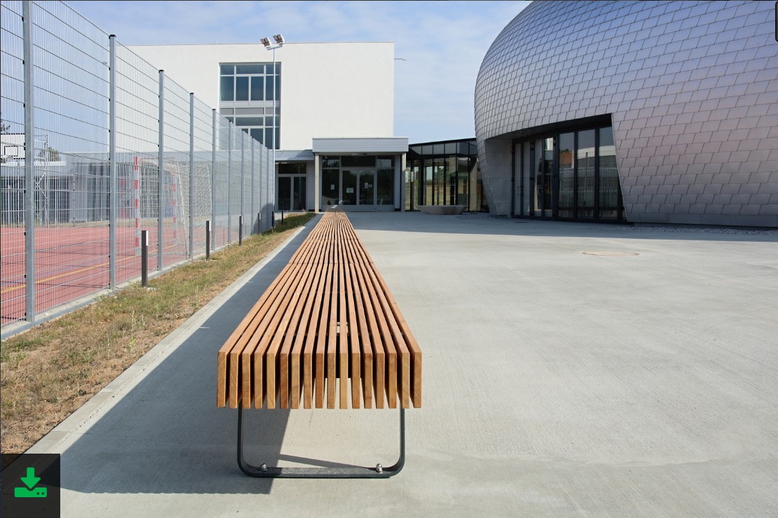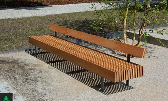 A masszív padon függőlegesen rögzítettprofilok álltak, amelyek fém és gumi távtartókkal vannak rögzítve. A padok szélén lévő távtartók támasztószerkezetként szolgálnak. A pad teljes szerkezete rejtett menetes rudakkal van rögzítve.