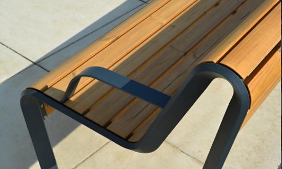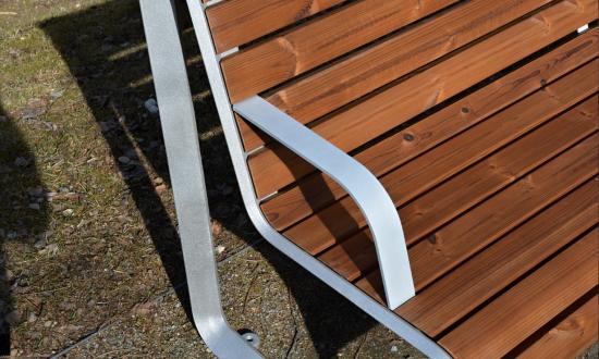 Az alumíniumötvözetből készült sínoldalak természetesek maradhatnak, vagy porszórt bevonattal kezelhetők. A háttámlával ellátott ülés tömör fa lamellákból készül, amelyeket rozsdamentes csavarokkal rögzítenek a tartószerkezethez. Az alap alsó részén négy lyuk található a rögzítéshez.