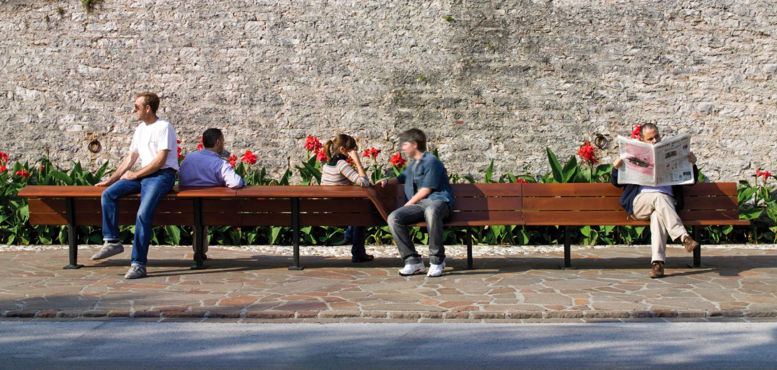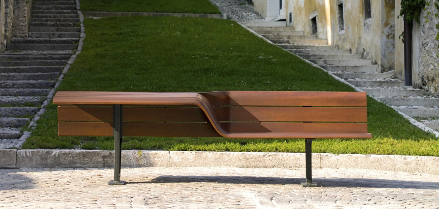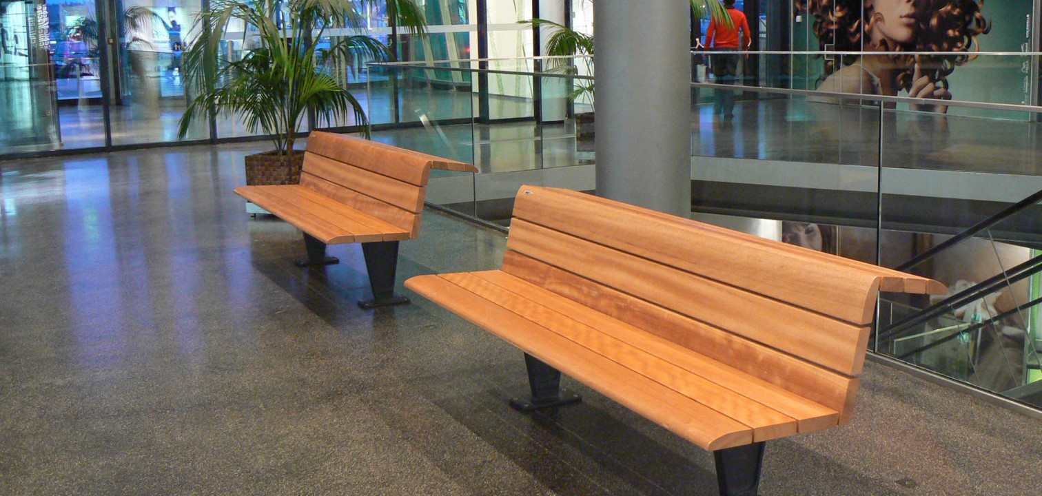 Ülések háttámlája egzotikus fából készűl. Minden fa léc független, ezért külön-külön cserélhető, és a pozíciójától  függően más-más alakú ( az ülés vagy a háttámla). Az öntöttvas tartók, ahol lehetséges, a feszín alatt vannak, hogy a szerkezet, könnyűnek látszon. Alternatív módon lehet rögzíteni talplemezen keresztűl dűbelezéssel.
