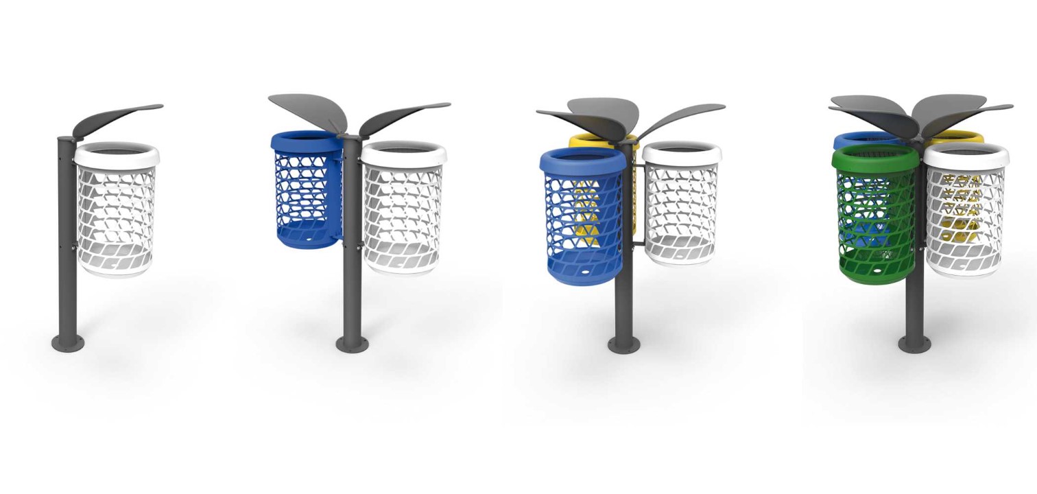 Sima vagy perforált vagy lézerrel vágott díszített acéllemezből készült, egyszerű hengeres edényből készült szemetes (ez a változat a tartalom láthatóságát teszi lehetővé). A szemétgyűjtő zsáktartó gyűrűvel van felszerelve, patenttal. D=80mm-es acélcső rúddal szállítható, amely akár 4 kosár fedéllel/fedél nélkül is megtámasztható, vagy falra vagy már meglévő oszlopra szerelhető konzollal.