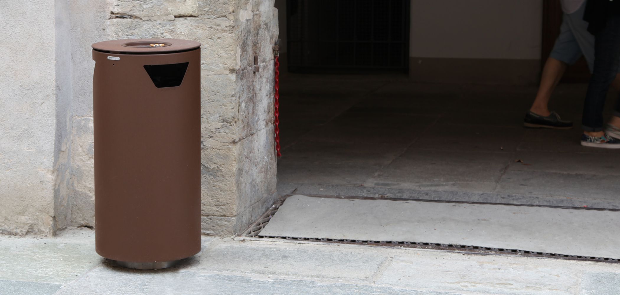 Az acéllemezből készült szemetesláda amely egy hamutartót tartalmazó központi lyukkal van felszerelve.  A külső szerkezet a szemét behelyezéséhez két ellentétes lyukkal van ellátva. A nyitott fedél szabadalmazott zárral van ellátva. Hengeres vagy négyzet alakú kivitelben  rendelhető, vagy egy meglévő oszlophoz rögzíthető.