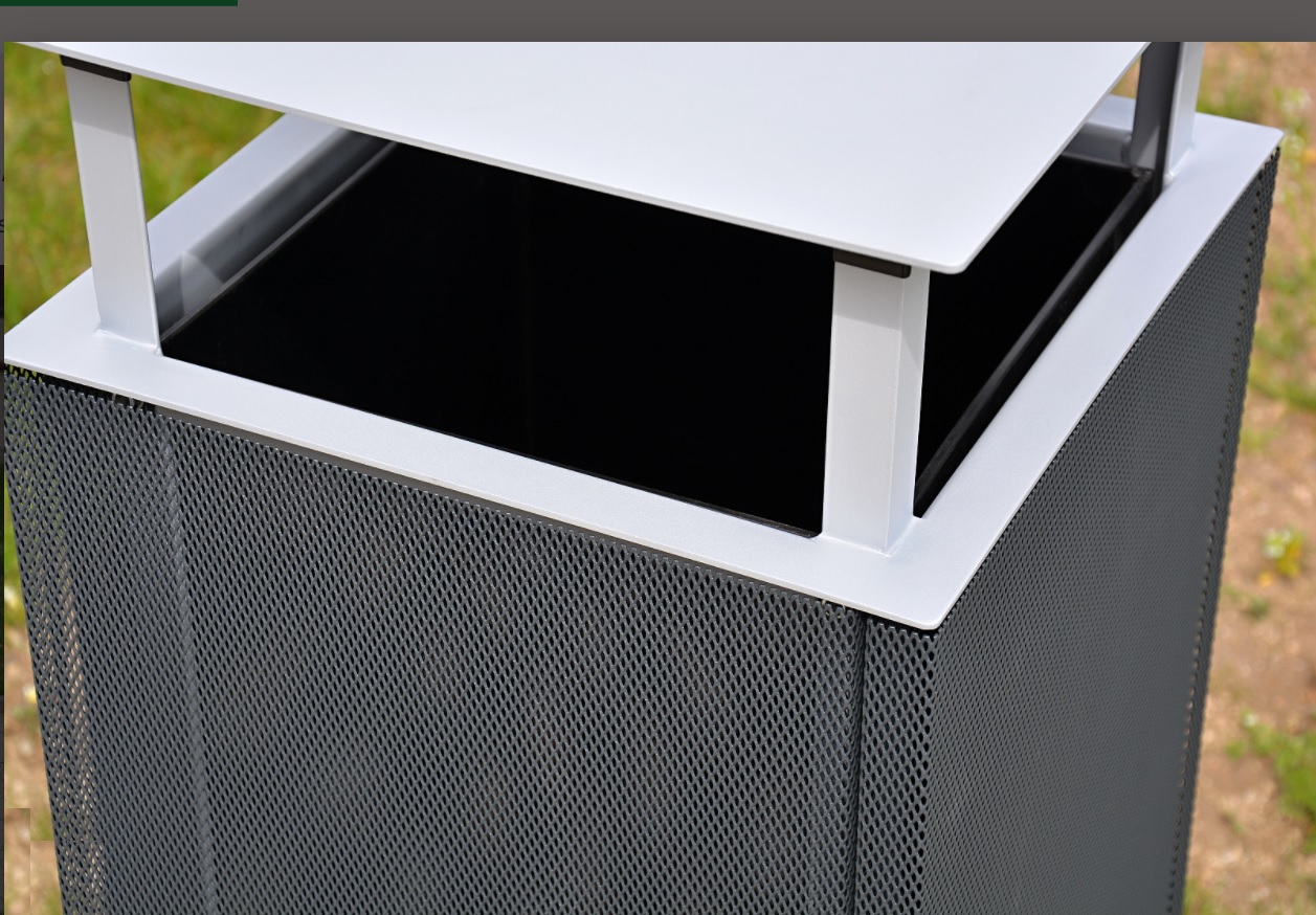 Horganyzott acélszerkezetét porfestéssel készűl. A hulladékgyűjtő alsó részén négy lyuk van az alaphoz rögzítéshez.