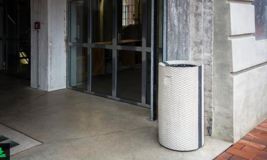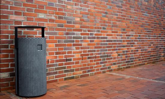 Klasszikus anyagból készült, modern szemetes. Kortárs és történelmi építészethez egyaránt alkalmas. Egyedülálló öntési technológia kiterjesztett fémmintával. Szilikon formába öntött nagyszilárdságú beton (HSC). Ezzel nem csak jellegzetes megjelenés érhető el, hanem a szabályos felületi textúra is nagyon megnehezíti a szemetes különféle matricákkal való felcímkézését vagy címkézését. A kosár középső részében helyet kapott az önkormányzat emblémájának, logójának vagy nevének öntése. A kosár két egyforma betonrészből áll, amelyeket fémelemek kötnek össze. Ezek az opcionális csuklós előtető rögzítésére is szolgálnak. Alapfelszereltségként natúr vagy antracit színben kapható. A fém alkatrészek színe a színskála szerint.