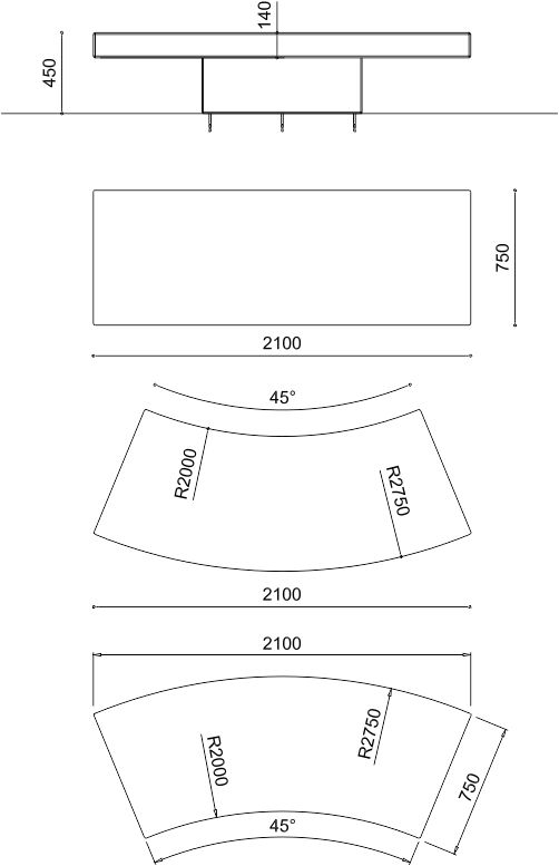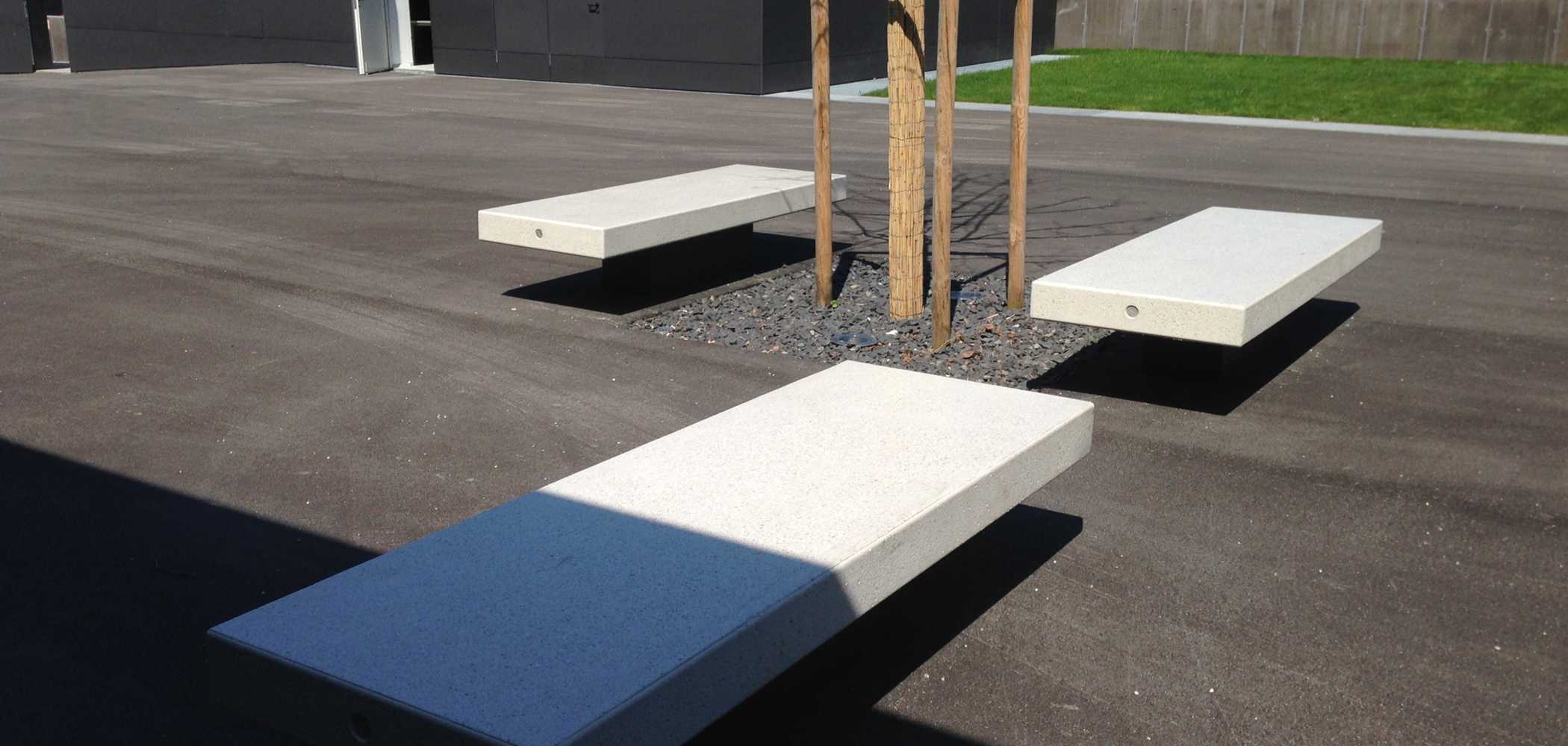 A felületek mindegyike sík ülésekkel rendelkezik sima, háttámlás vagy dupla háttámlás variációban. A háttámla rendelhető fából vagy acélból készítve.