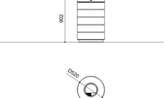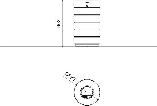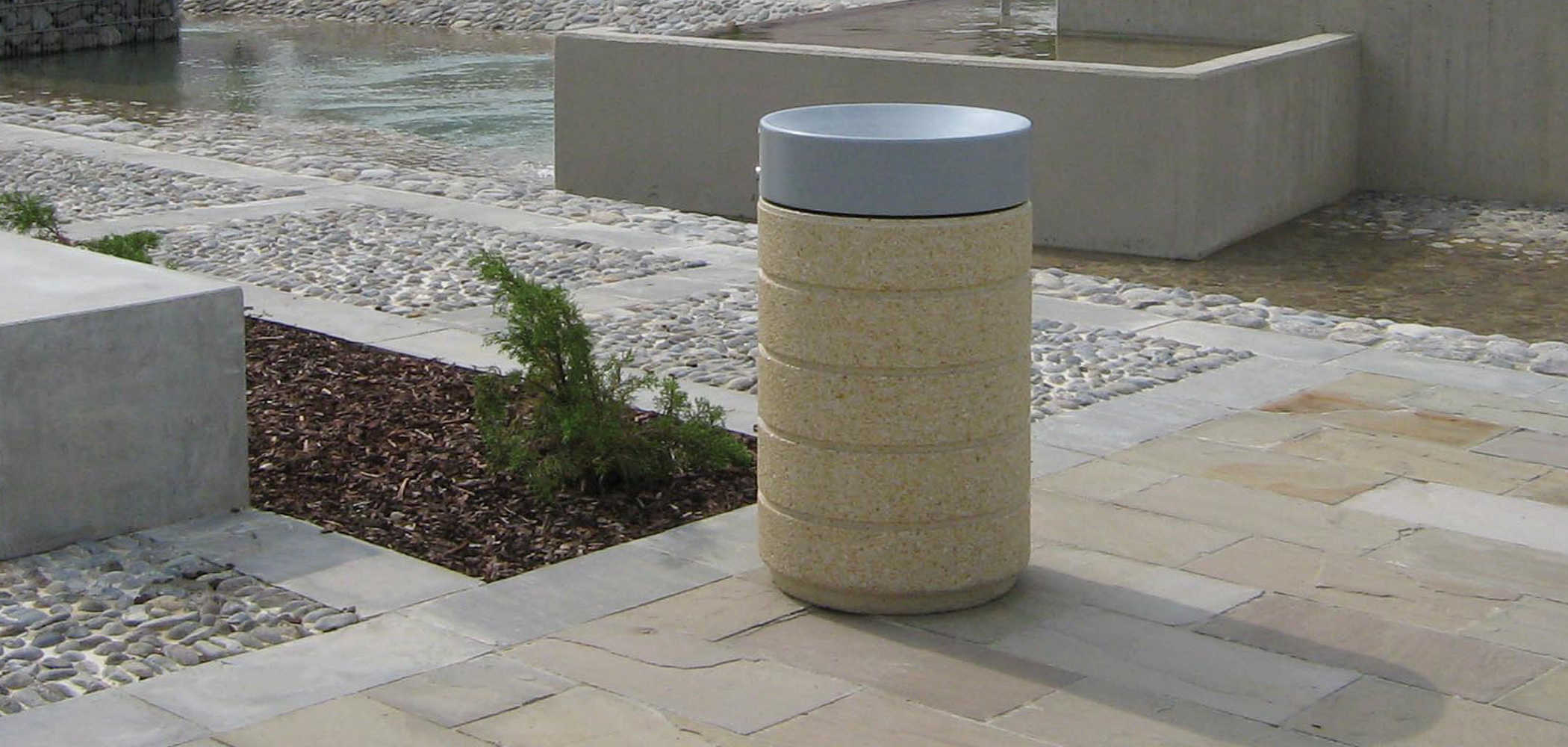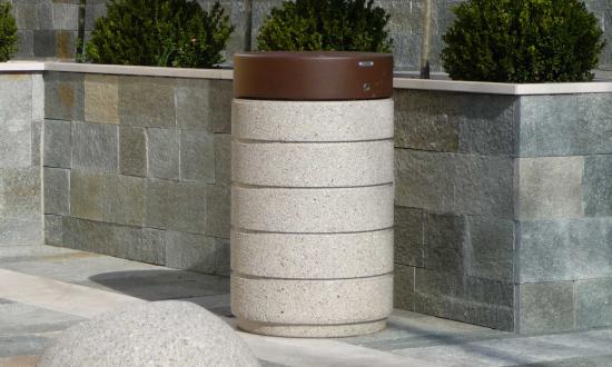 Márvány vagy gránit alapanyagú, HPC technológiával készült kültéri szemetes. A fedél gyűrű formájú, porszórt acél, háromszög alakú zárral, hamutartóval és a tároló belsejében egy rozsdamentes acél lopásgátló gyűrűvel ellátva. Alternatív megoldásként egy fogantyúval ellátott belső acéltartály is kérhető.