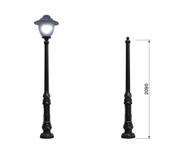 - magasság: 2,09 m, alap átmérője = 300 mm