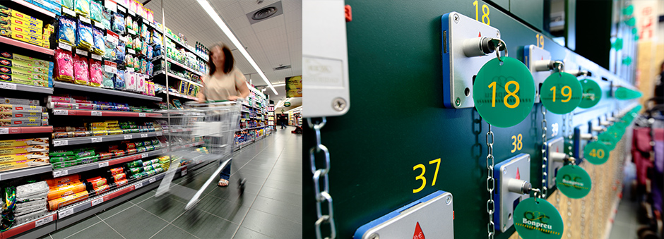 ECO pénzbedobós zárak felhasználhatók sportlétesítmények, fitnesz klubok, fürdők, pályaudvarok, bevásáló központok, közintézmények, szállodák stb. öltözőszekrényeinek biztonságos zárására.