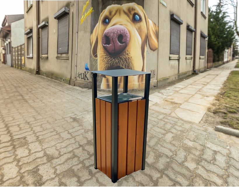 Ötvözi az esztétikai értékeket a szilárd,masszív kivitelellel. Acélszerkezet és acél betéttel ellátott, elegáns kivitelben. 3 színben kapható, fa lécekkel díszített. A tömör acél tető védi a tartály tartalmát az időjárási viszonyoktól. Ennek a városi kukának az egyszerű esztétikája és egyedi stílusa kétségtelenül hangsúlyozni fogja a tér jellegét. További előny a 75 l űrtartalom, ami tökéletesen alkalmas parkokba, lakótelepekre és zöld városi terekre. Tökéletesen illeszkedik az építészet más elemeihez, kiegészítve azt. Univerzális kialakításának köszönhetően ez a szemetes is használható szelektív hulladékgyűjtésre.
