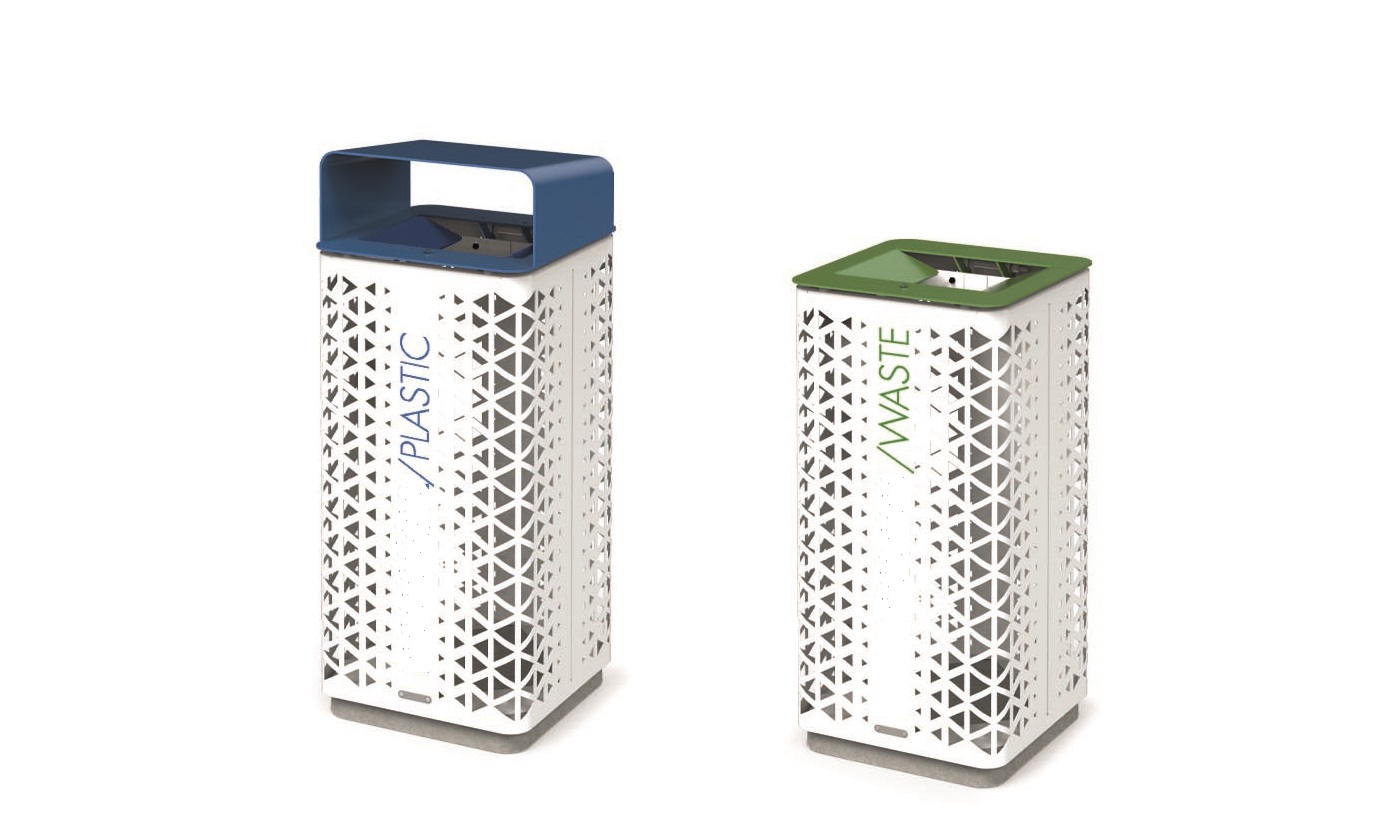 Lézerrel perforált fémlemez szerkezetből álló, geometrikus mintázatú szemetes kollekció, lyukas fedéllel ellátott és pattintható zárral nyitható. A szemetes elasztikus zsáktartó gyűrűvel és négyzet alakú betontalppal van felszerelve. A borítós változat is elérhető. A szemeteskukákat egymás mellé lehet helyezni, így szigeteket lehet kialakítani a szelektív gyűjtéshez.