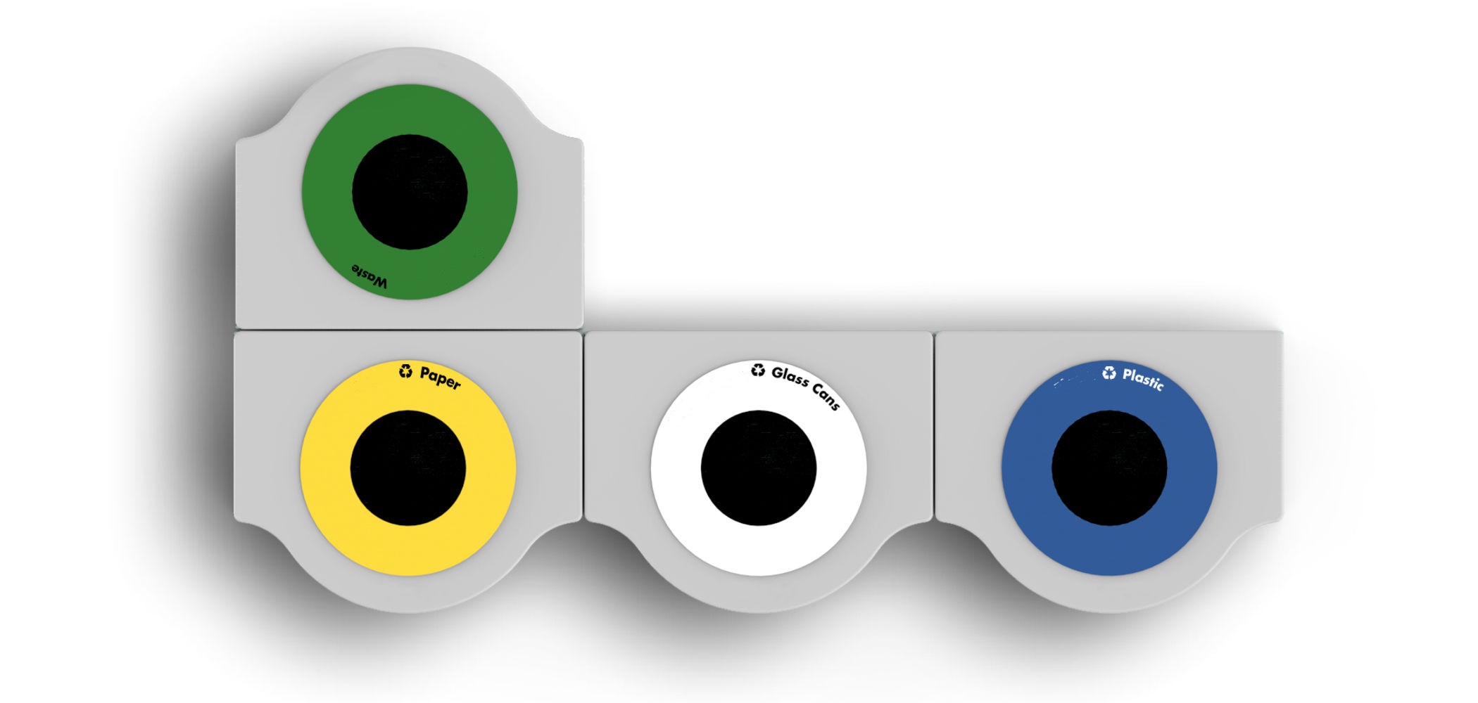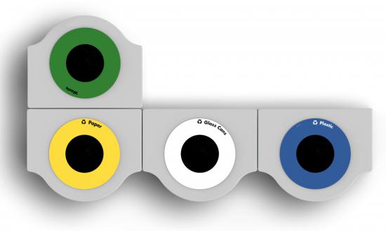 Újrahasznosított hulladékgyűjtés segítséghez készűl, moduláris és aggregálható, beltéri használatra ajánlott. A külső szerkezet porszórt acélból és egy nyitott alumínium fedélből készül. Fel van szerelve egy belső fémlemez tárolóval.